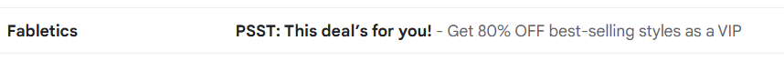 In this example, Fabletics uses the preview text to expand on the subject line. They work together to engage the reader, hooking them in and then offering more information. Your email subject line and preheader text are valuable tools to drive home a point.