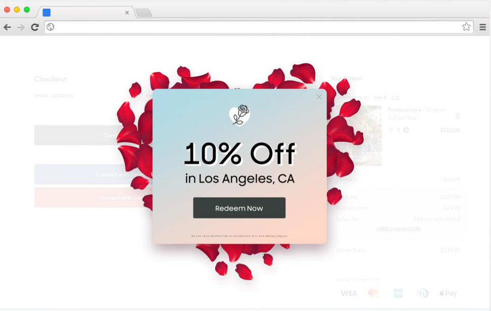 For example, when you have items with a stock level below a predetermined threshold, you can alert shoppers their item is almost sold out and it’s time to act now. This message can be shown in page or on abandonment to drive the sale before it’s too late.