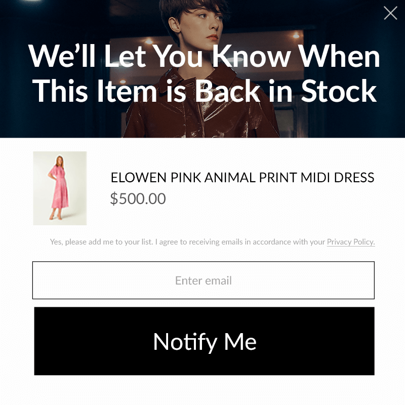 Once your stock levels reach zero, prompt users to enter their email so they can be notified when the product is back in stock.