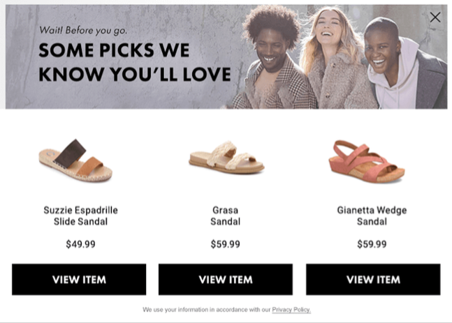 You can even reiterate existing offers to regain an abandoning shopper’s attention. Consider promoting your existing sales or free shipping and returns if there is any concern about hurting your bottom line.