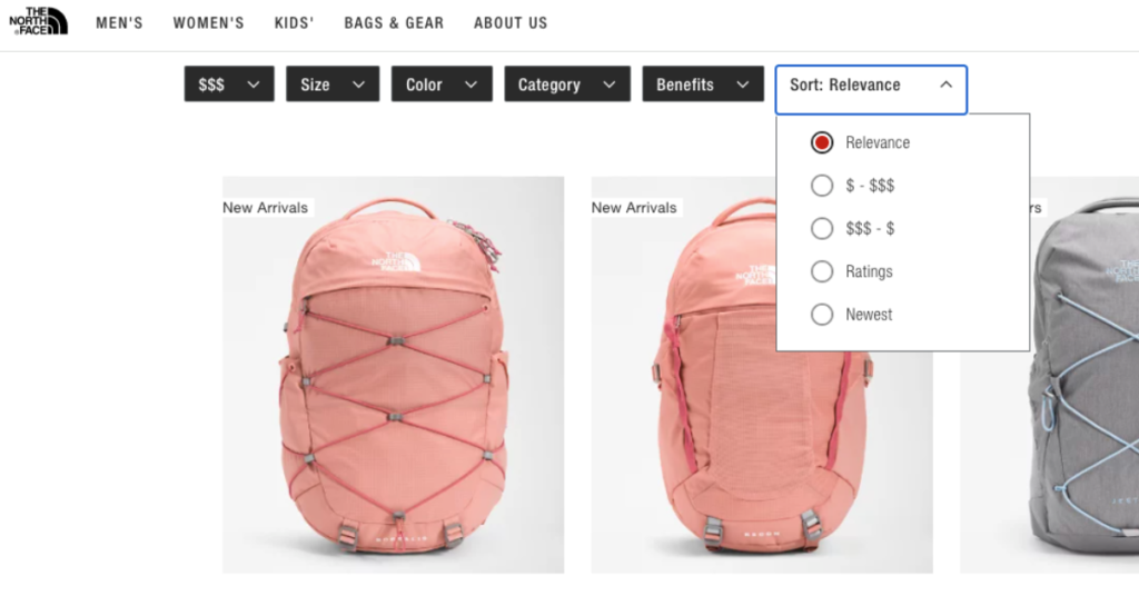 It’s also useful to implement sorting by ratings, specific price points, featured products, or new arrivals. This kind of social proof makes a huge impact in product selection, especially if there are multiple, comparable items.
