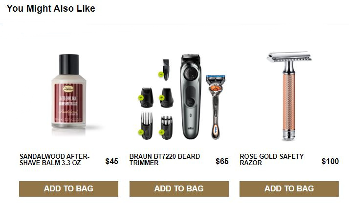 Position dynamic recommendations towards the bottom of your category pages to highlight similar products that shoppers could have otherwise missed. Through leveraging browsing or purchase history, you can easily recommend specific items that go hand in hand with visitor details.